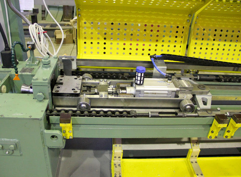 - Pulling carriage grips the forged end of the pipe, pulls the pipe through the die, and automatically releases the drawn pipe into the assembly pocket.
