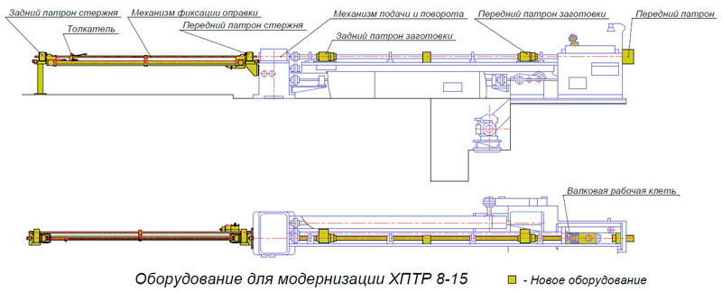 Оборудование устанавливается в стан взамен рабочей клети и валов механизма подачи и поворота без изменения конструкции остальных механизмов стана. Состав оборудования для модернизации станов ХПТР может быть изменен по желанию заказчика.
