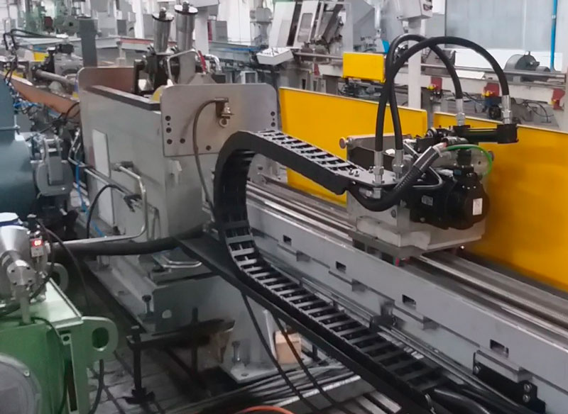 б) Прокатка заготовок с толщиной стенки менее 1 мм – вытяжной патрон в дополнение к вышеуказанным функциям обеспечивает подачу при прокатке конца трубы. Вытяжной патрон имеет достаточное усилие для срыва тонкостенной трубы с оправки и не повреждает поверхность и геометрию трубы. В этом случае проблема стыка-врезки концов труб исключается.
